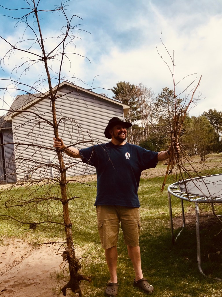 Today, my goal was to limb our trees of dead branches as well as clear a path at the back of the property for a forthcoming fence. This gave me the opportunity to try out my first chainsaw (had a giftcard to Home Depot so I ordered a 10 in., 18 volt Ryobi). After the sawing and piling, I went to work on transplanting some bulbs from the front yard to the back. I haven’t identified these plants yet, but there were a rogue line of them growing flush against the house, throwing all kinds of moisture under the siding. Alp and I planted them around an oak in the back. Hopefully they take and thrive in their new home.