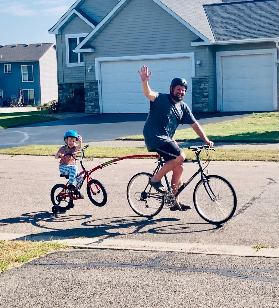 Saturday we took a bike ride at some nearby trails, and Sunday we picked up a Trail Gator for GRP’s bike. It was time to make the move as the poor fellow had to accordion his legs to fit into the trailer I pulled behind my bike. I got it hooked up yesterday and we took our maiden voyage around the block.